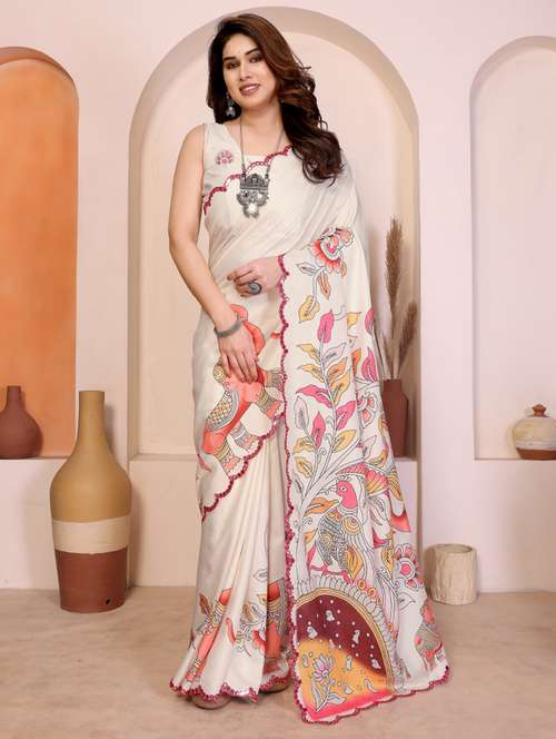 - » women kalamkari printed saree with blouse