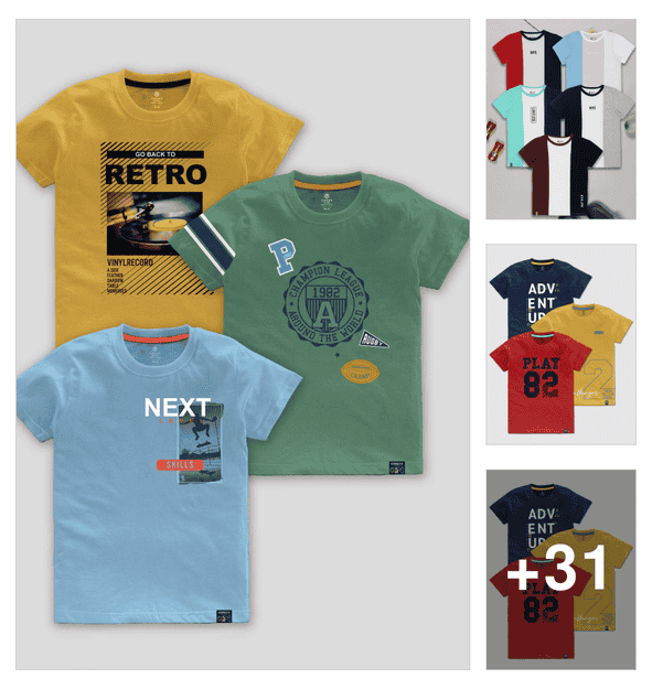 boys round neck printed set of 2 regular t-shirt