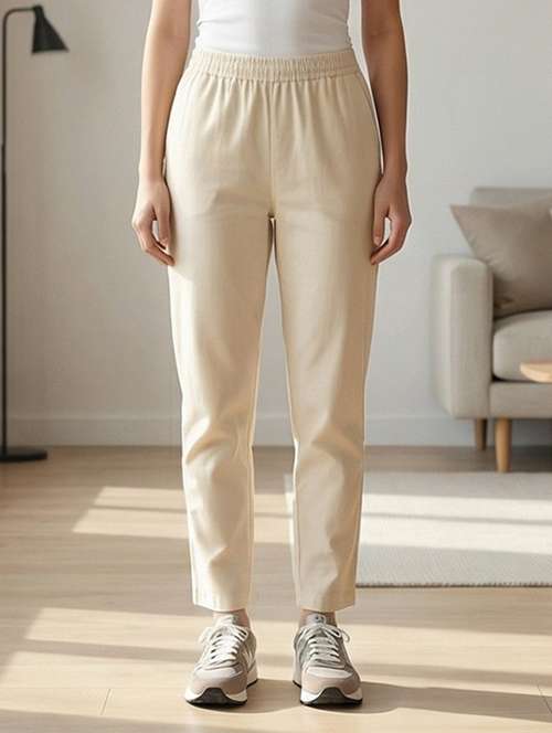 women solid mid rise ankle length tapered pant