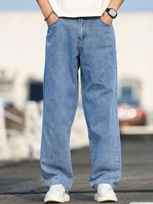 men plain mid rise baggy jeans