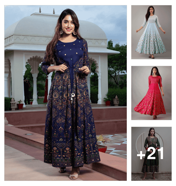 globus women blue ethnic block print mandarin collar flared hem tiered maxi fusion dress