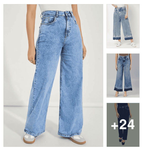 women solid high rise wide leg jeans