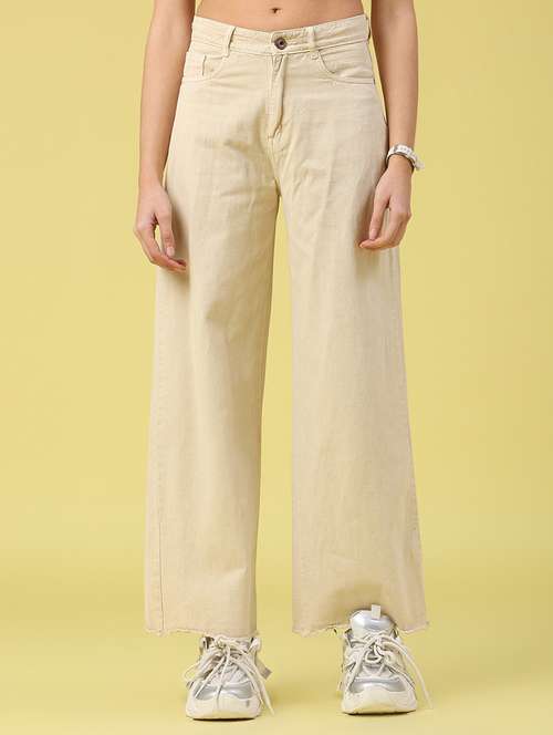 women solid mid rise wide leg jeans