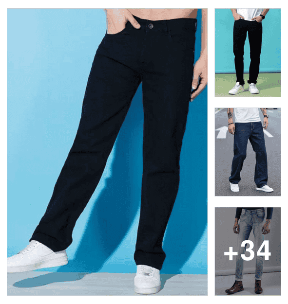 men plain mid rise full length straight jeans