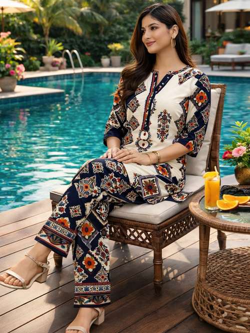 women printed three quarter sleeve ethnic co-ord set - 22416283 -  Standard Image - 2 women printed three quarter sleeve ethnic co-ord set - 22416283 -  Zoom Image - 2