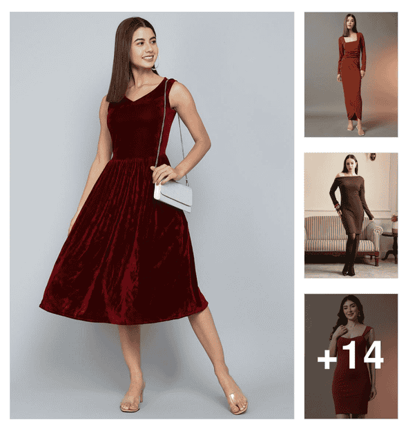 globus women brown round neck long sleeves cut-out detail velvet bodycon party dress
