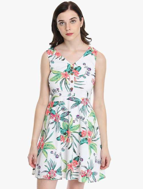 v-neck tropical a-line dress