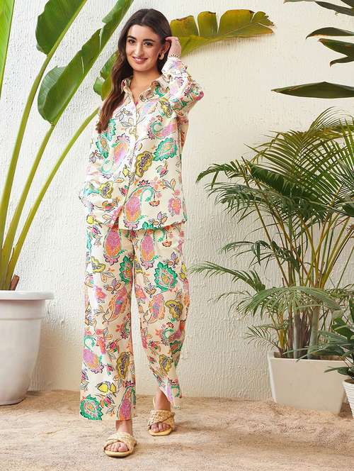 - » women printed long sleeve shirt & trouser co-ord set