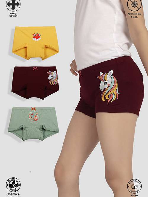 girls pack of 3 printed mid rise bloomer